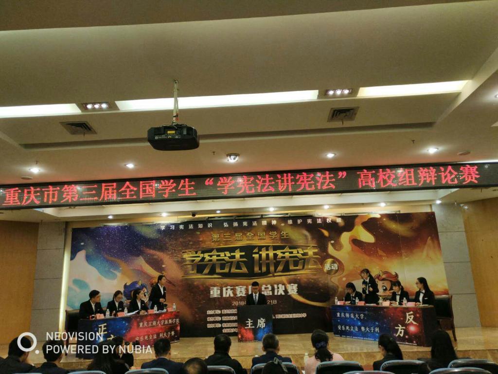 本次比赛由重庆市教育委员会主办,西南政法大学和重庆市两江新区教育局承办。重庆赛区总决赛是在各区县教育部门和各级各类学校积极组织“学宪法、讲宪法”活动基础上,选拔出优秀选手参加市级决赛,分为小学、初中、高中组和高校组。高校组总决赛分为个人主题演讲赛与团体辩论赛两个环节。全市52所高校参加了个人主题演讲赛,41所高校参加了团体辩论赛。此次比赛活动得到学校领导高度重视,教务处精心组织,探花av