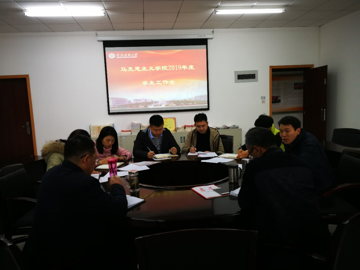 2019年度学生工作会”。学院党委书记刘军,党委副书记、院长陈洪,党委副书记姜土生,以及各年级辅导员参加了本次会议。会议由党委副书记姜土生主持。