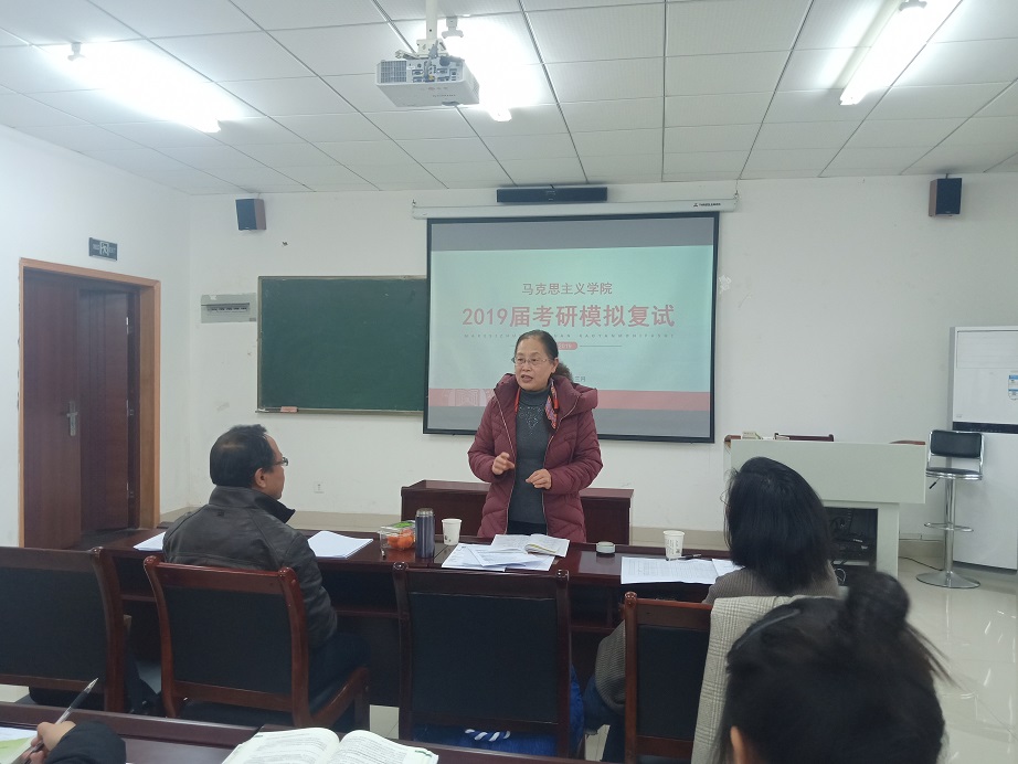 祝玉峰、王桂林、刘忠荣、王建斌、魏冰娥、李长泰、阮李全、郑瑜、周绍英、左秋民、赵艳华等11名专业老师分组担任模拟面试考官,2019届临近考研复试的学子参与本次活动。
