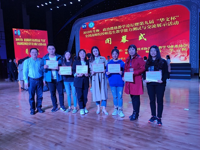 2019年9月20—23日,由中国教育技术协会微格教学专业委员会主办的2019年微格教学论坛暨第九届“华文杯”师范院校师范生(政治)教学技能交流演示活动在内蒙古乌兰察布市集宁师范学院举行,来自全国80余所高校的358名选手参加了激烈的角逐。我校探花av 5位思想政治教育专业本科学生在院长陈洪教授,指导教师郑瑜副教授、吴涯副教授的带领下首次参加此次活动就全部获奖,其中2016级学生艾梦获教学能力测试一等奖,2017级学生任锐雪、卢昊、张凯欣获二等奖,刘凤霞获三等奖教学设计竞赛卢昊获一等奖,艾梦、任锐雪、张凯欣获二等奖。郑瑜副教授、吴涯副教授获优秀指导教师奖。另外,院学科教学(思政)研究生向协会提交了7篇论文参加第九届“华文杯”全国师范生政治教学活动论文评比,谭京凤获二等奖,郑瑜、武银凤、李雪莲、唐吕俊驰、陈庆获三等奖。
