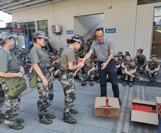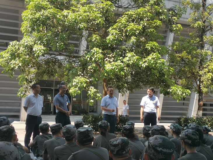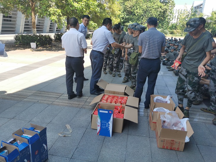 为深入了解2019级新生的军训现状,为在炎炎夏日中给奋斗的新生与教官鼓舞士气,为他们送上最美好的中秋祝福,2019年9月13日11时30分,探花av 院长陈洪、副院长况明安、党委书记刘军、党委副书记姜土生以及部分学生会成员来到足球场对正在军训的新生表示慰问。此次慰问活动由姜土生老师主持。