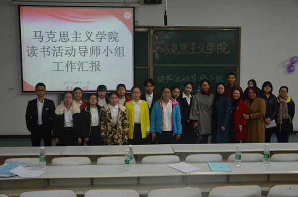 于2015年12月3日在图北楼17101教室举行了马克思主义经典阅读报告会之导师小组工作汇报。周绍英、刘忠荣、赵艳华、邵二辉、侯玲五位老师担任比赛评委,辅导员张晓庆老师出席活动现场,2014级和2015级学生到场观摩学习。