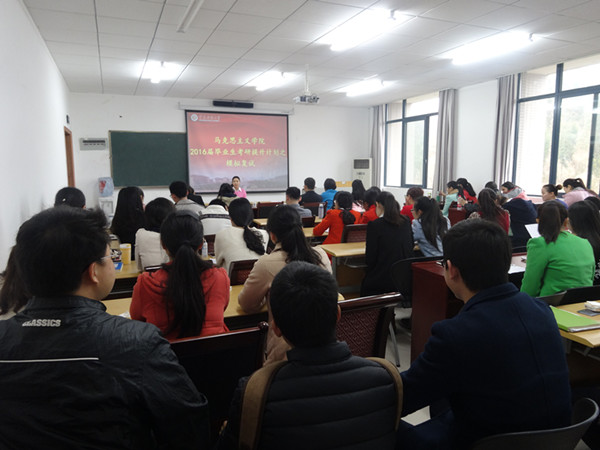 2016届毕业生考研提升计划之模拟复试”,团总支书记马小又主持本次活动,阮李全、杜红、杨頔、杨露以及魏冰娥老师担任本次模拟面试评委老师,2016届部分学生参加。