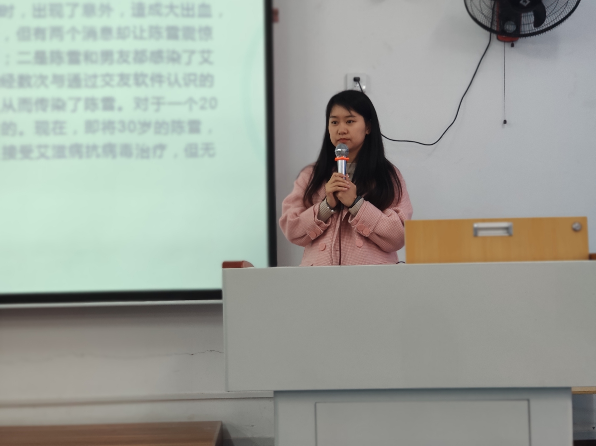 活动伊始,张敏老师以独特的案例进行引入:同性之间发生高危性行为应该如何处理?紧接着通过与同学们交流分析和互动讨论,解答了什么是艾滋病,增强了学生们对艾滋病的初步了解。随后,张敏老师从个人和社会的层面详细地讲解了艾滋病的影响。提到了艾滋病不仅危害个人的身心健康,还会降低民族素质,消弱社会生产力等等。因此,只了解艾滋病远远不够,学会如何预防艾滋病至关重要。紧接着,在如何预防艾滋病这一关键环节中,张敏老师提出了三种防治艾滋病的方法:一是不发生不安全的性行为,二是使用安全套,三是紧急阻断。教育学生学会紧急处理,及时地预防艾滋病。此外,张敏老师还拓展知识,组织同学们观看了一个有关结核病的视频,并对视频内容补充讲解,带领同学们学习了有关结核病的知识,提高了全体同学对于各种传染性疾病的预防意识。