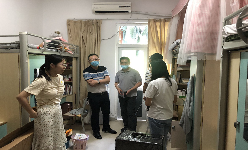 党委副书记方敏同各年级辅导员老师一起走进学生寝室看望返校同学,并叮嘱返校同学在做好自身防护、注意身体健康的同时应调整心态,适应环境,认真学习,练就过硬本领。