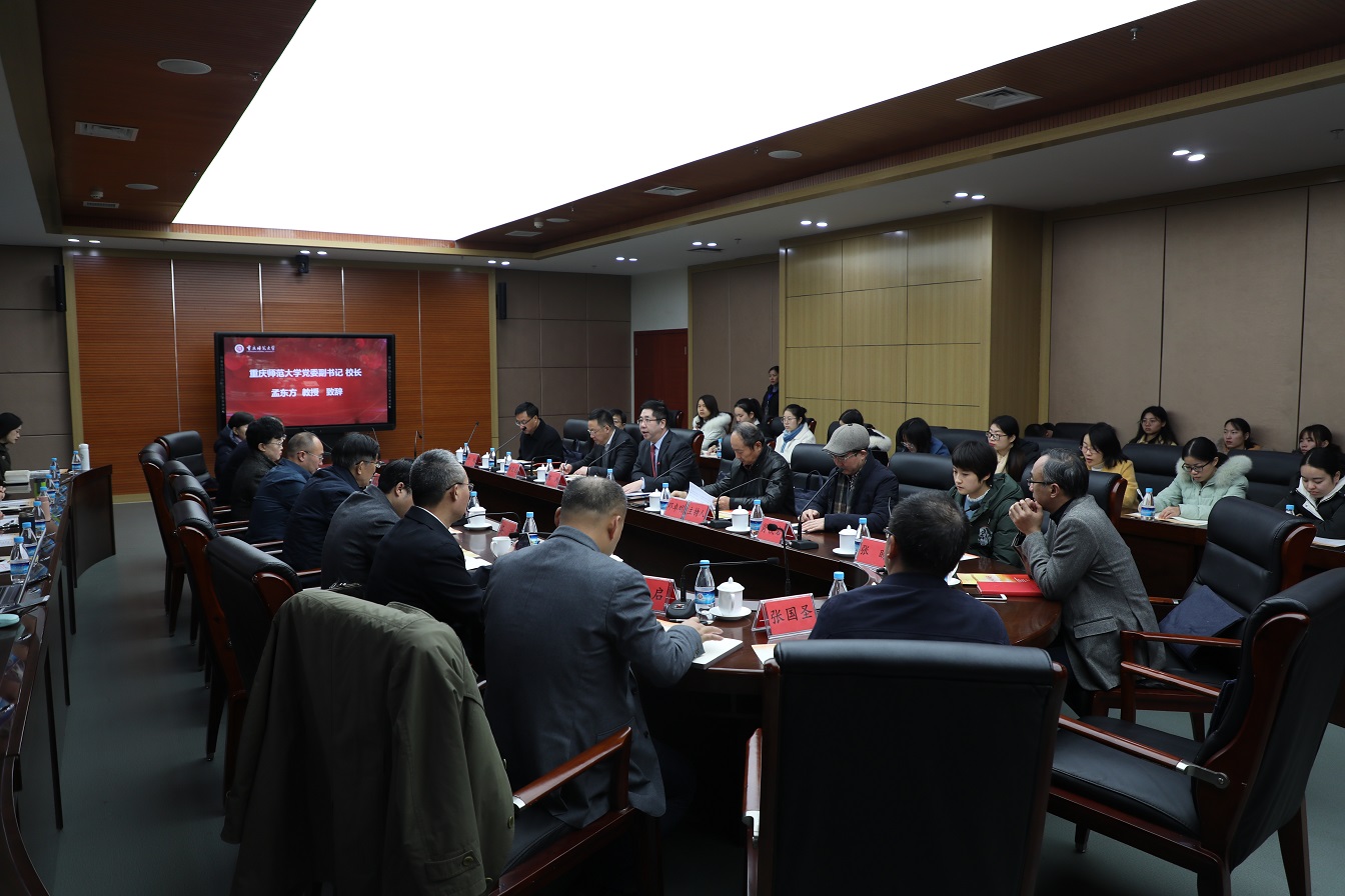 等高校的专家学者汇聚一堂,就新时代如何提升思想政治教育质量、如何构建科学有效的思想政治教育质量评价体系进行了深入探讨和交流。中共重庆市委教育工委、市教委宣教处处长吴边,我校校长孟东方教授到会祝贺论坛召开并致辞,中国教育发展战略学会思想道德专业委员会理事长冯刚教授代表主办单位讲话,探花av