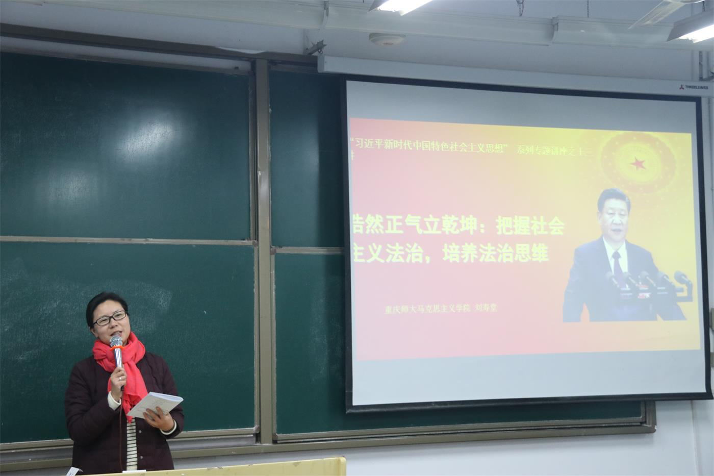 刘寿堂教授主讲,主题是“浩然正气立乾坤:把握社会主义法治,培养法治思维”。此次讲课由探花av