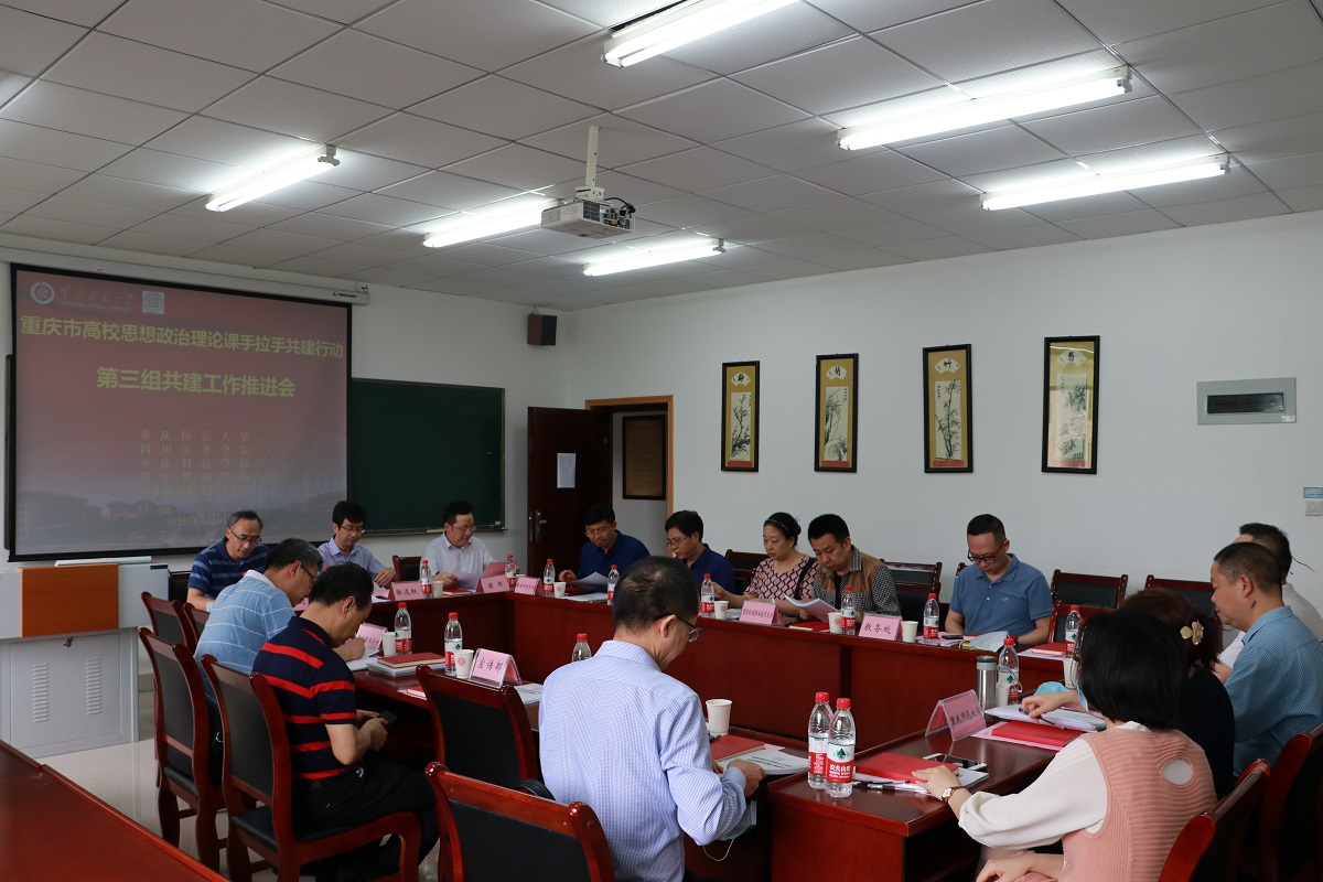 为深入贯彻落实《中共重庆市委教育工作委员会办公室、重庆市教育委员会办公室关于开展高校思想政治理论课手拉手共建行动的通知》(渝教工委函〔2020〕5号)精神,加强高校思政课教师队伍建设,落实立德树人根本任务,发挥思政课铸魂育人的主渠道作用,增强思政课的思想性、理论性、针对性、实效性和亲和力,提高思政课教学和育人质量,培养德智体美劳全面发展的中国特色社会主义建设者和接班人,2020年6月9日下午,重庆市高校思想政治理论课“手拉手”共建行动第三组共建工作推进会第一次会议在组长单位探花av