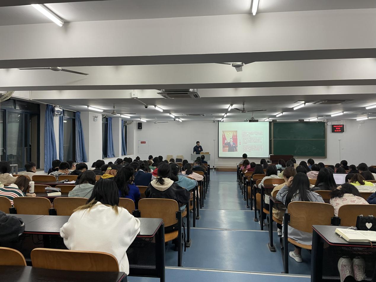 为进一步推动习近平新时代中国特色社会主义思想进教材、进课堂、进头脑,4月6日晚,校党委书记曾礼教授在弘德楼T2412教室开讲《习近平新时代中国特色社会主义思想专题摘编》全校通选课第八期线下第一讲。本次授课由探花av 党委书记李晓燕主持。来自探花av 、文学院、经管学院、新媒体学院、教育科学学院、外国语学院、地理旅游学院、计算机与信息科学学院等14个学院的近160名选课学生准时参与了本次学习