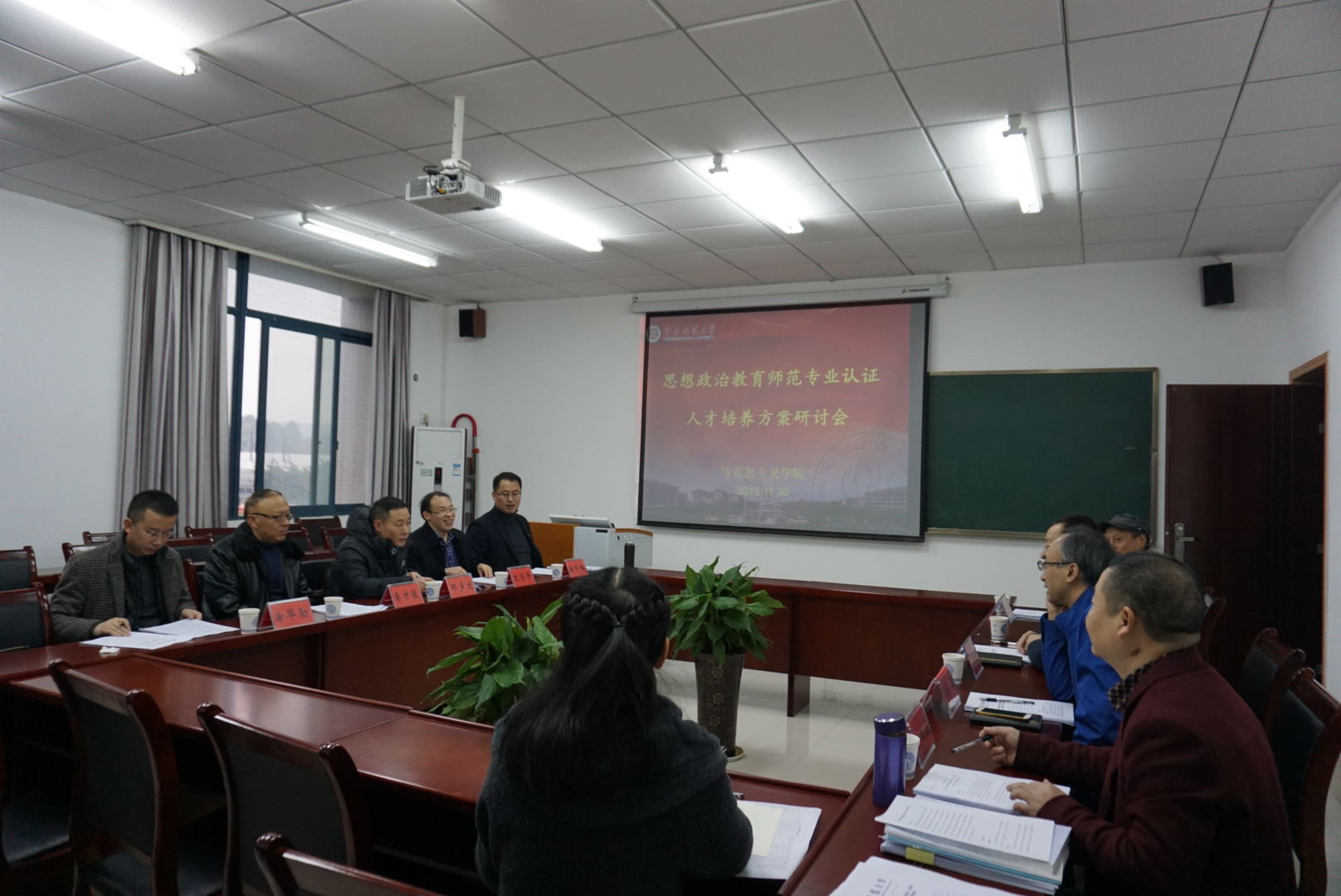 思想政治教育师范专业认证人才培养方案把脉问诊。学院党委书记刘军、院长陈洪、副院长况明安、党委副书记姜土生、政教系主任祝玉峰、政教系副主任郑瑜出席研讨会。
