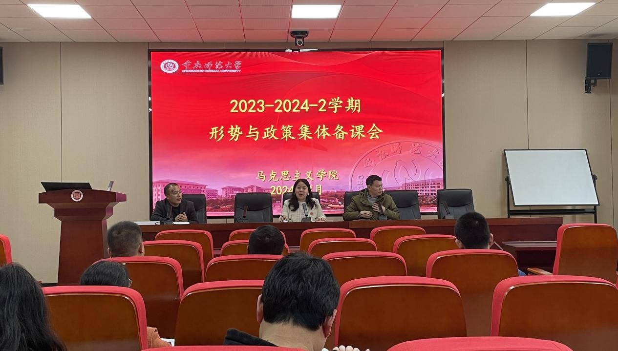 2023-2024学年第二学期形势与政策集体备课会于汇贤楼106 会议室召开。学院副院长姜土生教授、侯玲教授、教研室负责人赵玉民教授、授课教师及学院教科办工作人员出席会议。