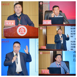 原校长孟东方教授、河北师范大学张骥教授、江南大学刘焕明教授、四川大学李辽宁教授分别作题为“以习近平创新理论为指导创建中国发展学的探索”“百年大变局与多样化社会思潮的科学引领”“习近平文化思想的体系架构与致思理路” “党的十八大以来中国共产党对中国特色社会主义本质的理论创新”的主题报告。