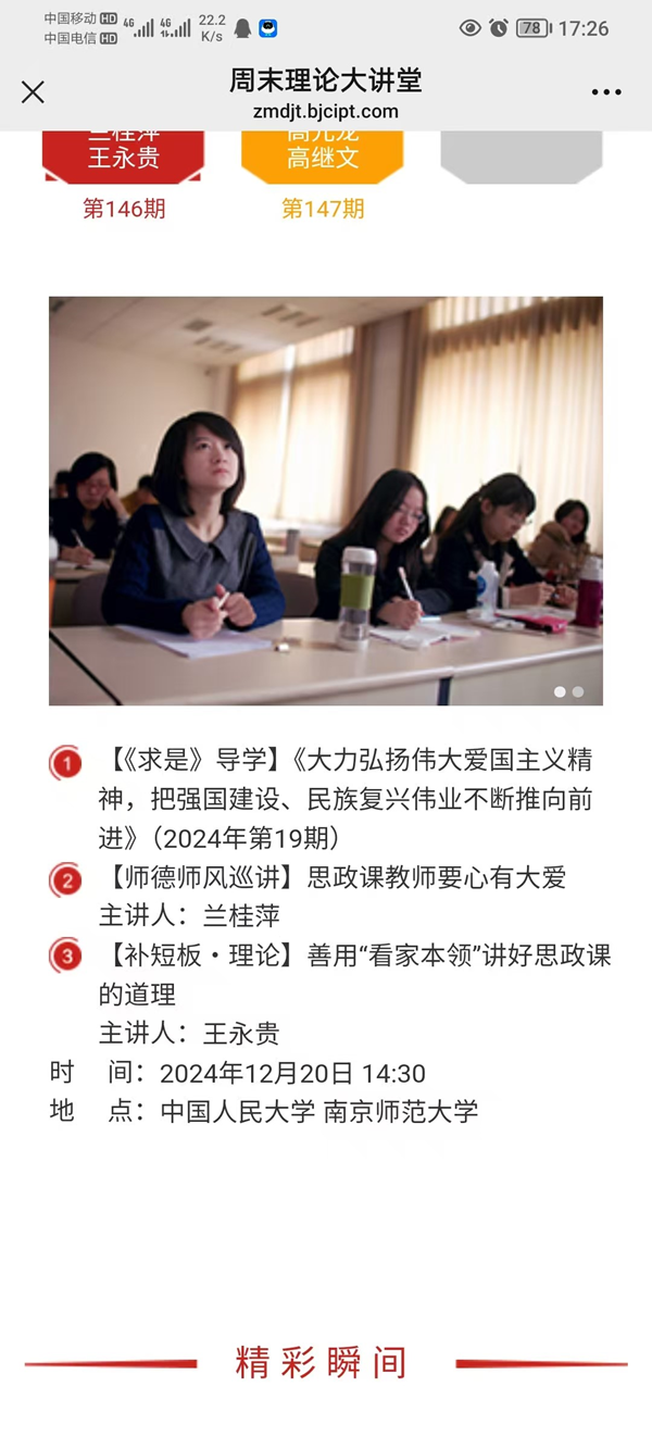 2024年12月20日,由教育部主办,全国高校思想政治理论课教师网络集体备课平台承办,北京高校思想政治理论课高精尖创新中心提供全程技术支持的“周末理论大讲堂”第146讲在中国人民大学举行。探花av