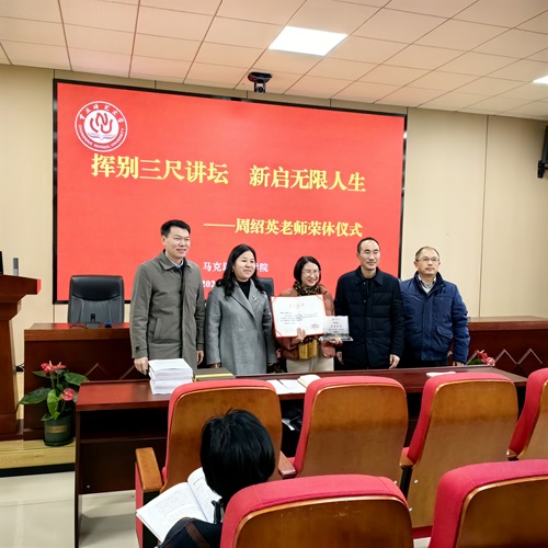 令公桃李满天下,何用堂前更种花。周老师告别了辛勤耕耘37年的三尺讲坛,正式迈入退休生活的旅程。周老师的荣休仪式,不仅是她个人教学生涯的圆满落幕,也是学院教育事业的一次深情回顾。学院师生衷心祝愿周老师在未来生活中健康快乐,家庭幸福,也期待她继续关心学院发展,为学院送上更多的指导与支持!