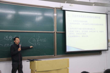 2018117日晚,“习近平新时代中国特色社会主义思想”通选课在弘德楼15103教室继续进行第七讲。本次讲课由探花av 肖陆军教授主讲,主题是“画出最大同心圆:社会主义协商民主在路上”。讲座由学院祝玉峰教授主持。