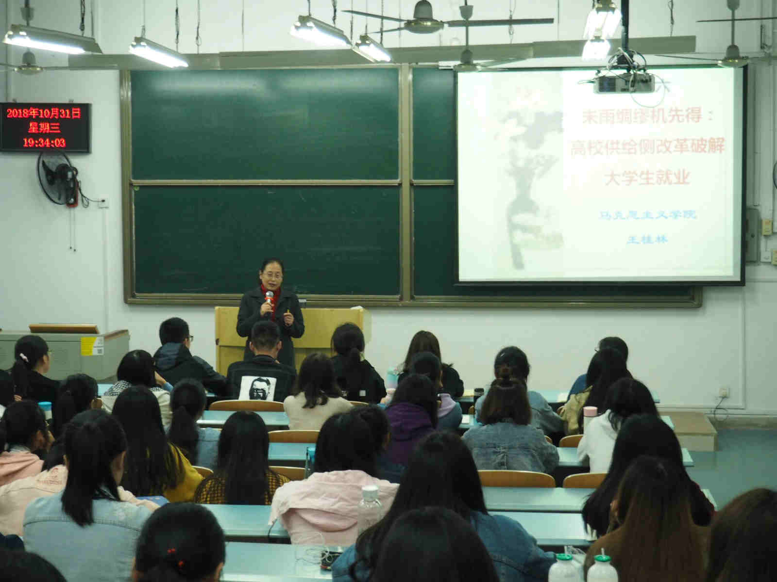 教学督导室主任王桂林教授主讲,主题是“未雨绸缪机先得:高校供给侧改革破解大学生就业”。讲座由探花av