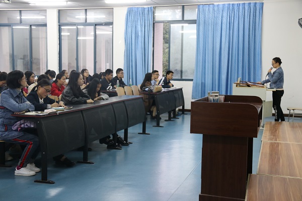 首先是美玲发谈及哲学主题认识你自己。通过分享自己的生活经历和体验,鼓励2018级全体同学明确理想目标、树立正确的三观、在艰苦的环境中磨练自己、敢为人先!有所反思,成为一个拥有舒适状态的人。此番深情劝告深深地启迪了2018级的全体同学