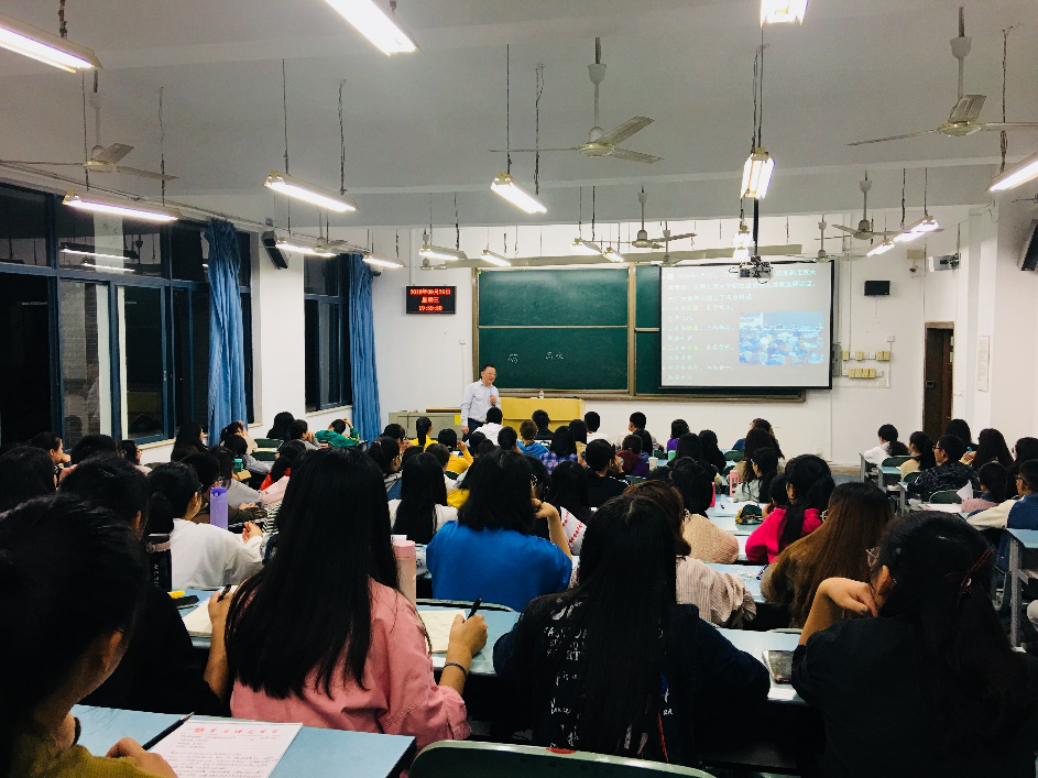 在近两个小时的讲课中,陈洪教授的备课充分,PPT制作精致,讲课充满激情,一气呵成,风趣幽默,注重对同学的正面引导和教书与育人的结合。讲课贴近同学实际,贴近同学生活,贴近学生专业,受到同学们的欢迎,整个课堂时而充满欢声笑语,气氛活跃。