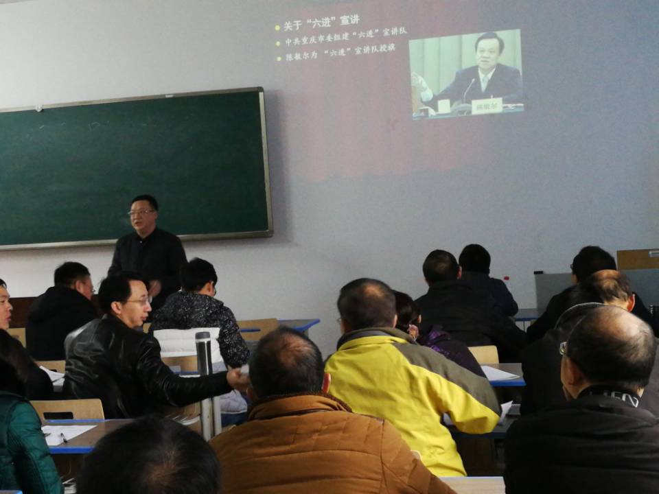 面临着前所未有的机遇。然后,陈院长从抢抓机遇建设市级示范马院、建章立制提升治理能力水平、锐意进取深化教育教学改革、服务社会彰显学院声誉影响、凝心聚力形成干事创业氛围五个方面提出学院的改革思路和发展方向。最后,陈洪院长引导全院教职工要对党的十九大精神真学、真懂、真做、真用,以此激励大家要用实际行动,齐心聚力,撸起袖子加油干!