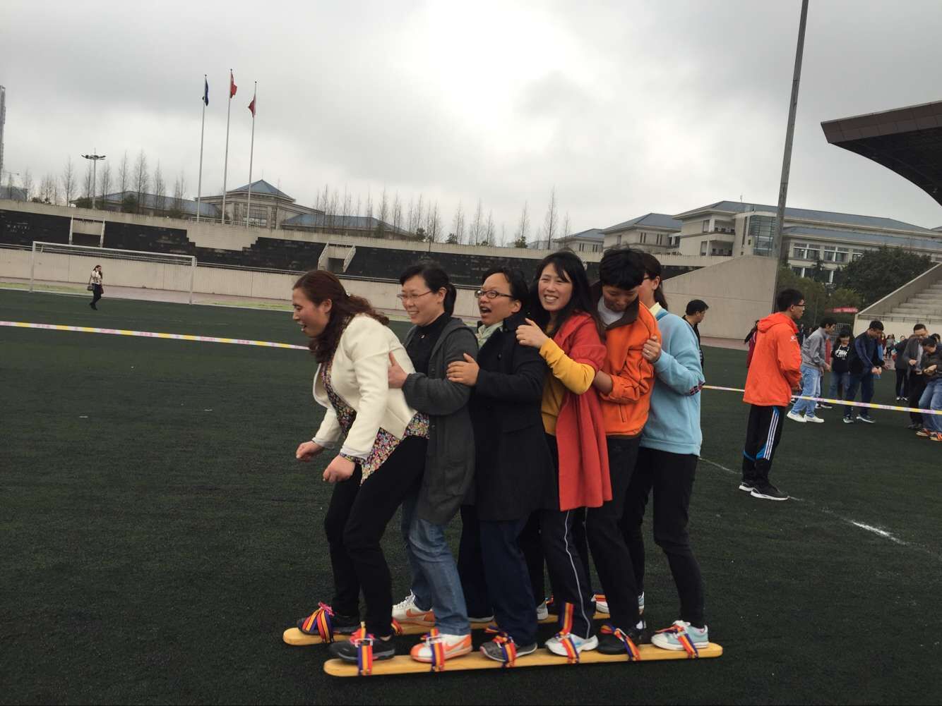 16时30分,周泽扬校长宣布趣味运动会开始,各学院积极准备就绪,比赛以学院为单位,分为“女王”五人组和男女六人混合组,参赛小组被两条木板固定为一个整体往返跑道,用时最少者获胜。