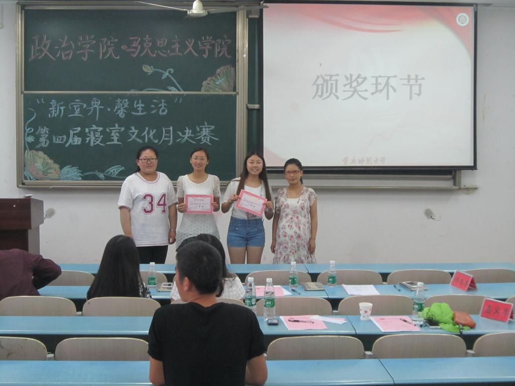 2015514日,由探花av 团总支·学生会生活部主办的第四届“新室界,馨生活”寝室文化月之创意表演秀决赛暨颁奖典礼在弘德楼5202教室举办。校学生会文娱部部长张瑾帆、生活部质检组副部长潘颢婷,探花av 学生会主席张峻担任评委。出席此次活动的嘉宾有探花av 辅导员张晓庆老师、2011级优秀学生郝梅。