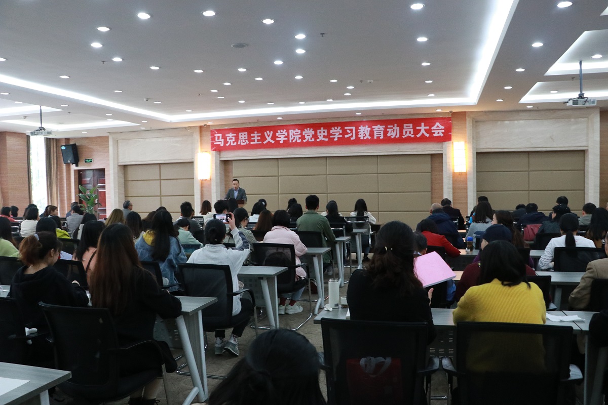 在三春湖学术会议厅召开了党史学习教育动员大会,全院师生党员参加了此次动员大会。会议由学院党委副书记兼纪委书记方敏同志主持。