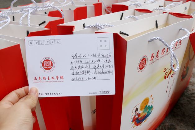 佳节即至,学院领导老师们代表学院向2021级新生送上中秋暖心祝福,并为同学们送上牛奶、月饼等慰问品,沉甸甸的慰问品传递着独属于马克思学院的温情。
