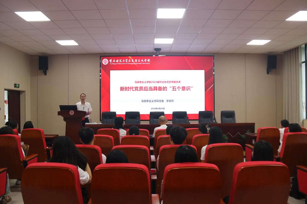 活动第三项,李晓燕书记以“新时代党员应当具备的‘五个意识’”为主题于汇贤楼106会议室为毕业生党员同志上了一堂生动、深刻的党课。本次专题党课分为三个层次:首先,深入学习、明确“五个意识”的深刻内涵,保持优良的品格作风;其次,鼓励党员同志主动对照“五个意识”,审视自身存在的问题及不足,并积极改正;最后,强调要牢固树立“五个意识”,为争做合格党员提供坚实保障。随后,李书记对毕业生党员提出两点期许:一是要牢记党员的身份和职责,始终坚定理想信念,不断增强“五个意识”;二是要在敢于担当中历练提高,在真抓实干中建功立业,争做让党放心、爱国奉献、担当民族复兴重任的时代新人。