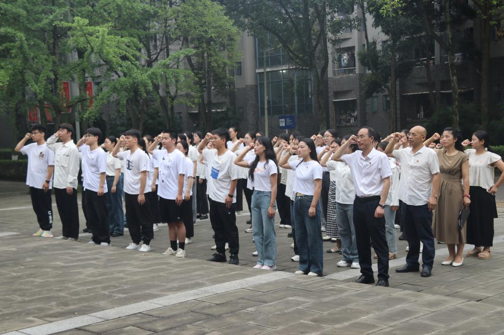 活动第二项,方敏副书记带领全体毕业生党员重温入党誓词。同志们高举右手、庄严宣誓,在铿锵誓言中再次明确了自己的责任与使命,表达了为党和人民事业奋斗终生的决心。