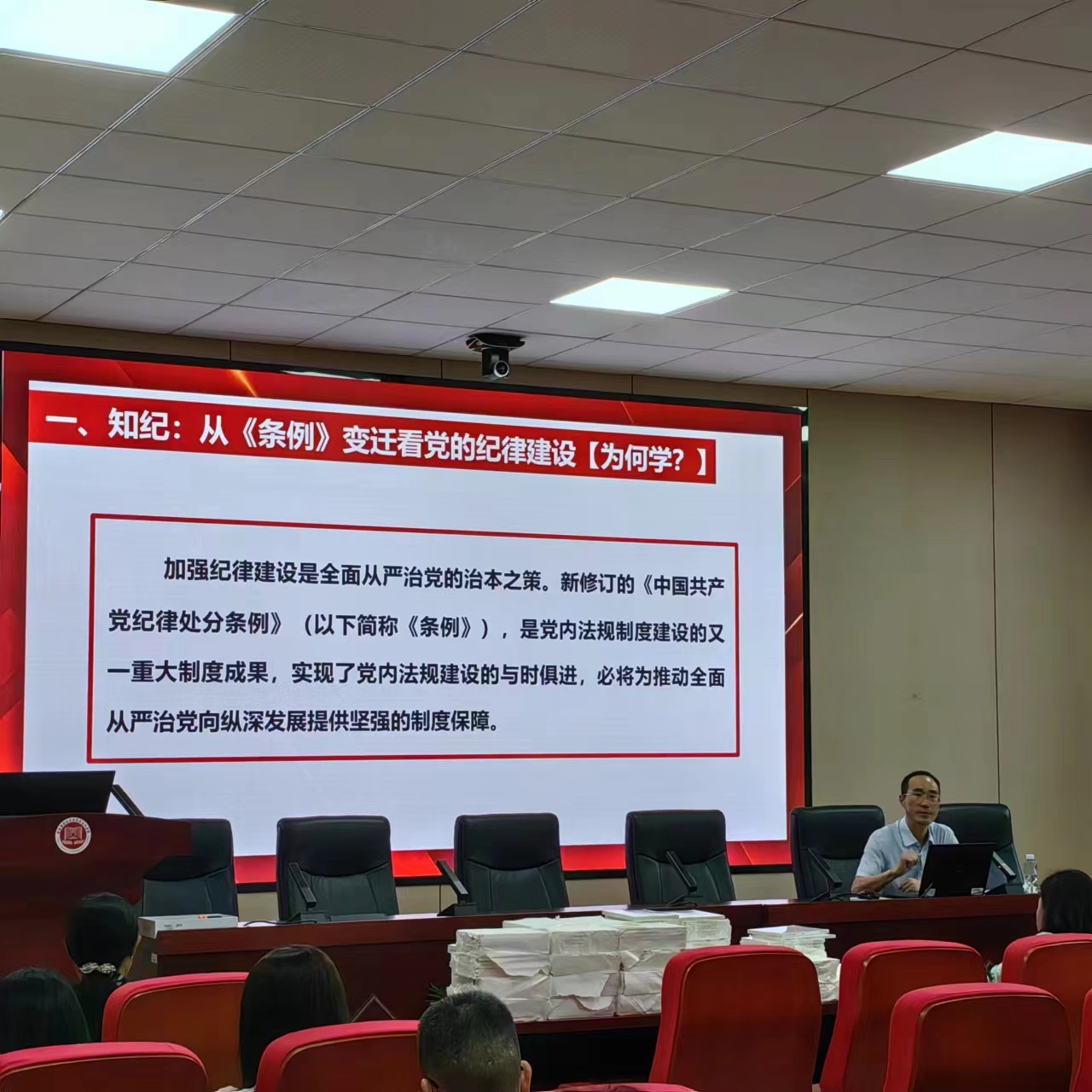 本次纪律党课的题目是“学纪·知纪·明纪·守纪:做遵章守纪的表率”。李晓燕从知纪:从《条例》变迁看党的纪律建设,明纪:党纪学习教育的重点内容,学纪:党纪学习教育的方法论,守纪:党纪学习教育的实践要义四个方面详细阐述了党纪学习教育为什么学、学什么、如何学、怎么做。李晓燕指出,《中国共产党纪律处分条例》(下简称《条例》)自颁布以来历经四次修订,其总则的内容积极贯彻落实党的重要理论、路线、方针、政策,体现了高度的政治性;分则的内容与时俱进,符合监督执纪的现实需要;附则的内容则体现了以人为本的根本宗旨。新修订的《条例》其主要内容可以概括为“一二三四五六”,即一个指导思想、两个坚决维护、三个责任区分、四种监督形态、五个加重情形、六大违纪行为。他表示,党员干部要端正态度、真心诚意的坚持原原本本学、坚持联系实际学、坚持突出重点学,通过学习得到自我净化、自我完善、自我革新、自我提高。