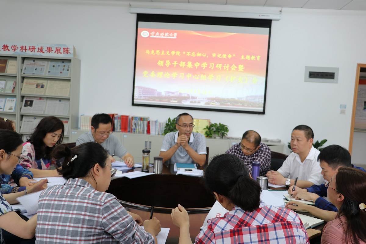 全体参会人员首先学习了习近平总书记在“不忘初心、牢记使命”主题教育工作会议上的讲话(2019年5月31日),接着观看了习近平总书记带领中共中央政治局常务赴上海瞻仰中共一大会址、赴浙江嘉兴瞻仰南湖红船的视频资料(2017年10月31日),并学习习近平总书记的讲话《走得再远都不能忘记来时的路》。学习结束后大家发表了自己的看法。刘军书记认为习近平总书记近几年的思想均可落实到“不忘初心、牢记使命”,并且一以贯之,而“走得再远都不能忘记来时的路”是习近平总书记对全党上下的谆谆告诫,告诫我们不能忘记共产党员的初心。在这次主题教育的学习中乃至今后,我们始终要把初心写在行动上、把使命落在岗位上,更好把习近平总书记的殷殷嘱托全面落实到马院的发展建设上来。其他几位同志也纷纷做了发言。首先是“不忘初心、牢记使命”主题教育的开展在党内乃至社会上都产生了很大的影响,得到了全党上下的积极响应。其次,作为一名党员,要有奉献精神,在自己的岗位上尽职尽责,这一点习近平总书记已为我们做了很好的榜样。第三,作为马院的老师,不断提高思想觉悟,严格遵守法律法规,深入学习习近平总书记新时代中国特色社会主义理论。