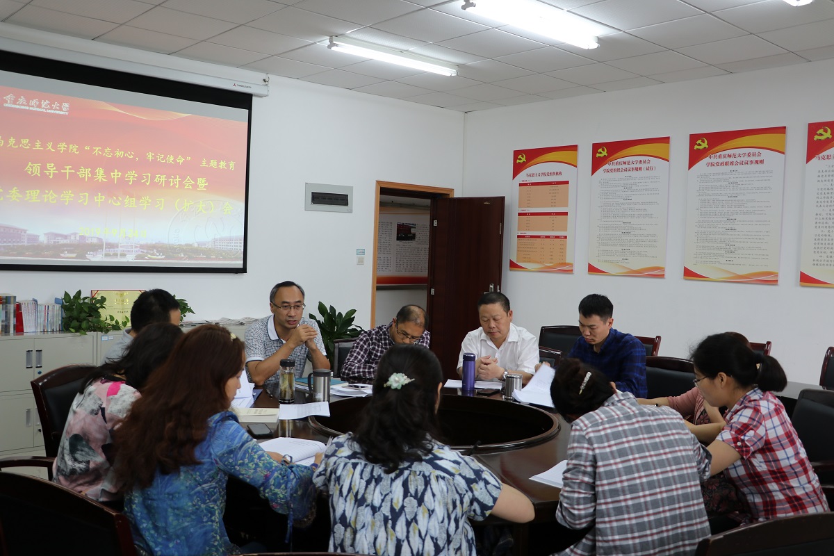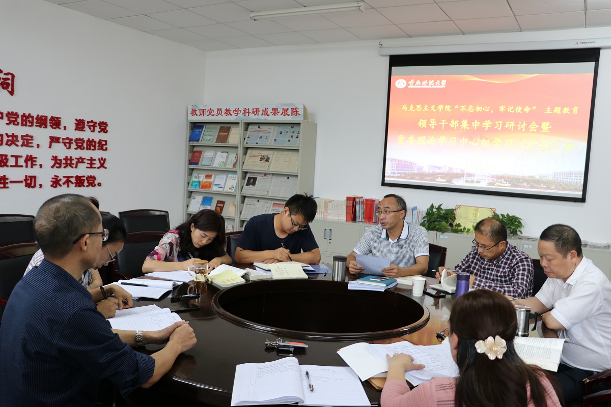“不忘初心、牢记使命”主题教育领导干部集中学习研讨会暨党委理论学习中心组学习会,学院党委委员、纪委委员、支部书记、组织员参加会议。会议由党委书记刘军主持。