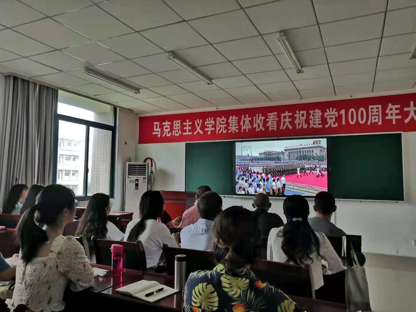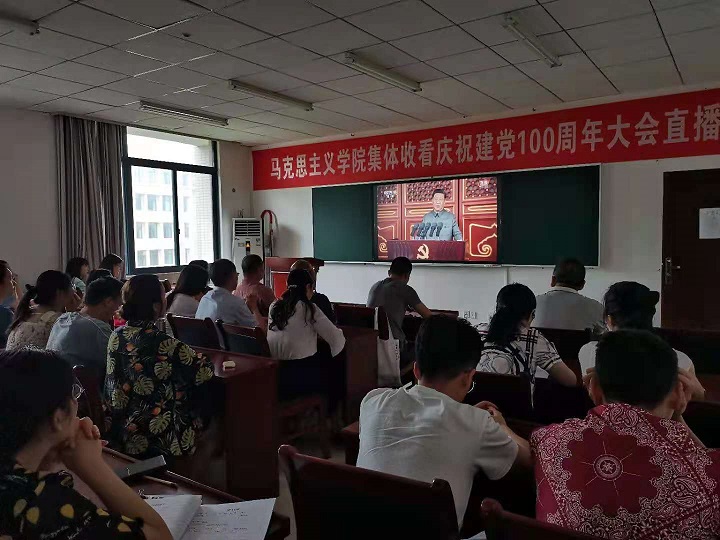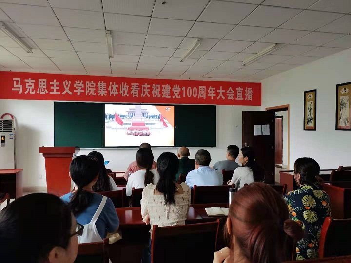 庆祝中国共产党成立100周年大会于2021年7月1日上午8时在北京天安门广场隆重举行。按照上级党组织和学校要求,学院党委积极组织全院师生观看庆祝建党100周年大会直播庆典盛况。学院领导班子、党委委员、纪委委员、各支部书记及各支部党员代表等到学院309会议室进行了集体观看。