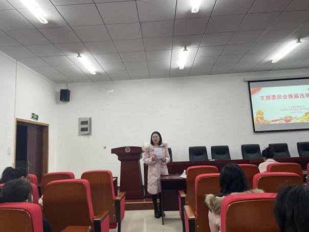 大会第项议程进行研究生第二党支部支委会委员和支部书记选举。李剑同志首先各位党员详细讲解支委会委员和支部书记的选举办法,并宣布了上次会议酝酿的候选人名单(罗莉、黄丹、徐琴、蔡淑芸)。接下来,我支部严格按照《中国共产党章程》和《中国共产党基层组织选举工作暂行条例》的相关规定,采取无记名差额选举的方式进行选举。根据选举计票结果,罗莉、徐琴、蔡淑芸三位同志当选为研究生第二支部支委会委员。最后,新选出的三位委员随即召开支部委员会会议,选举支部书记并确定支委会的分工。李剑同志公布了最终结果:徐琴担任支部书记、罗莉担任组织委员、蔡淑芸担任宣传委员。
