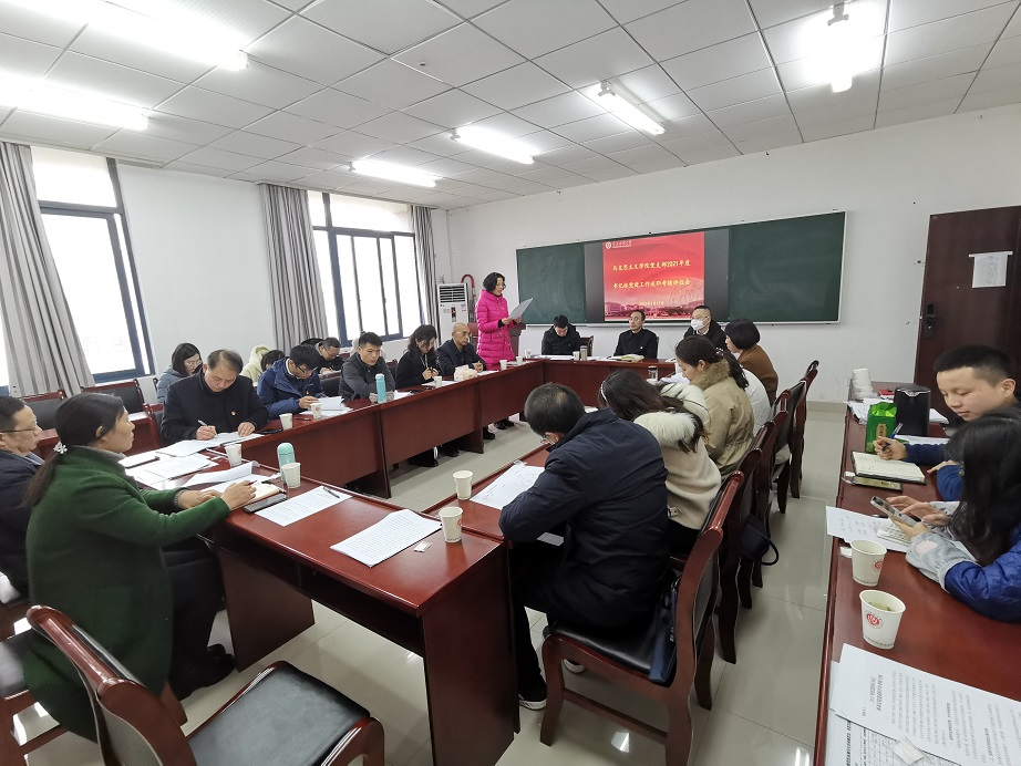根据学校《2021年度党组织书记抓基层党建述职评议考核方案》和《中共探花av 委员会组织部关于印发<支部工作考核办法(试行)>的通知》(重师委组〔2018〕58号)精神,2022年1月17日上午,探花av 党委在学院309会议室召开2021年度党支部书记抓党建工作述职评议考核工作会。会议由学院党委书记李晓燕同志主持,学院党委委员、纪委委员,各支部书记、支委和专职组织员参加了本次会议。
