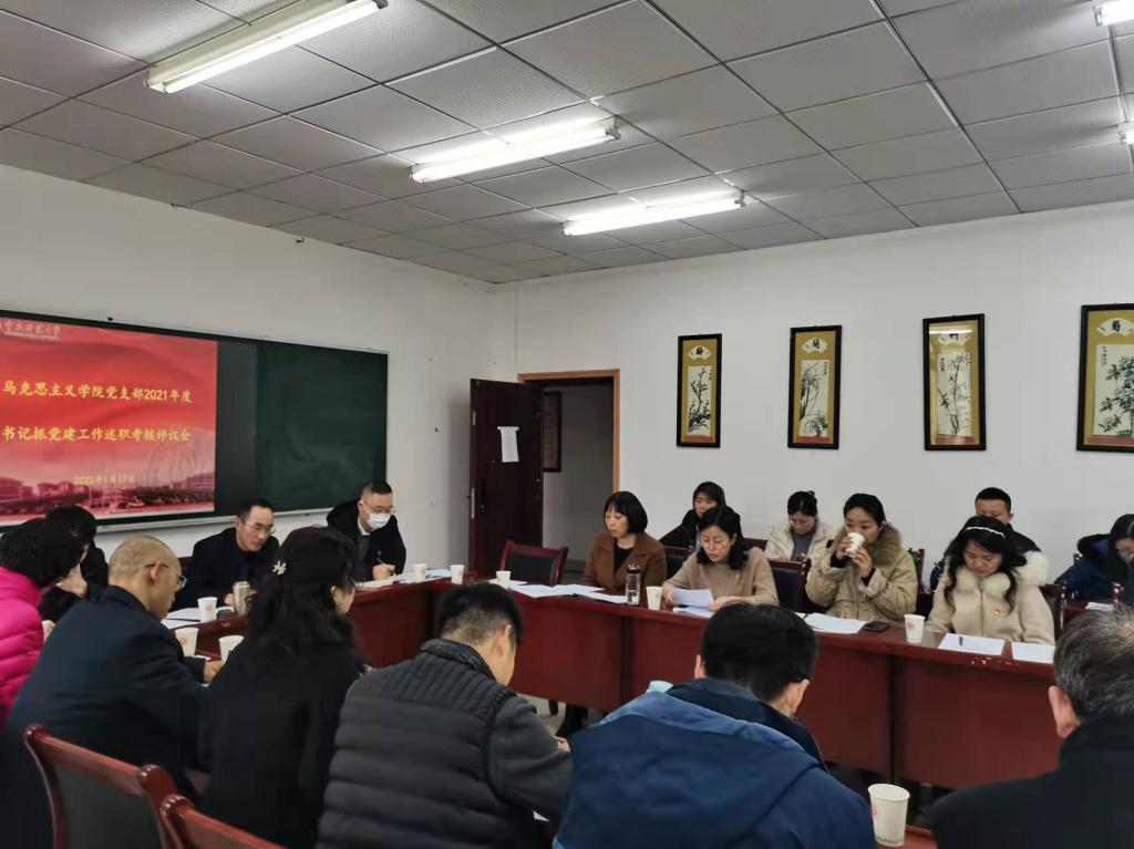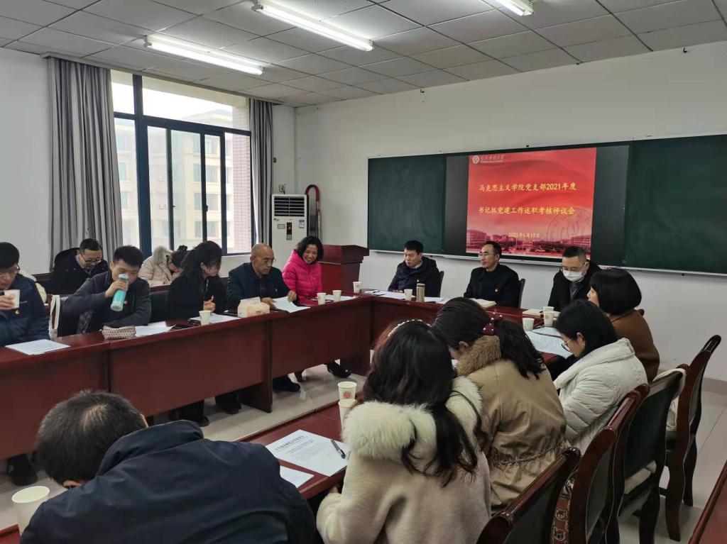 会上,马基原支部、毛中特支部、思法支部、纲要与行政支部、研究生一支部(原研究生支部)、学生一支部、学生二支部的支部书记,就2021年度支部党建工作履职情况、存在的问题及下一步努力方向三个方面逐一进行述职。随后,参会人员对各支部述职情况进行了现场考核测评。