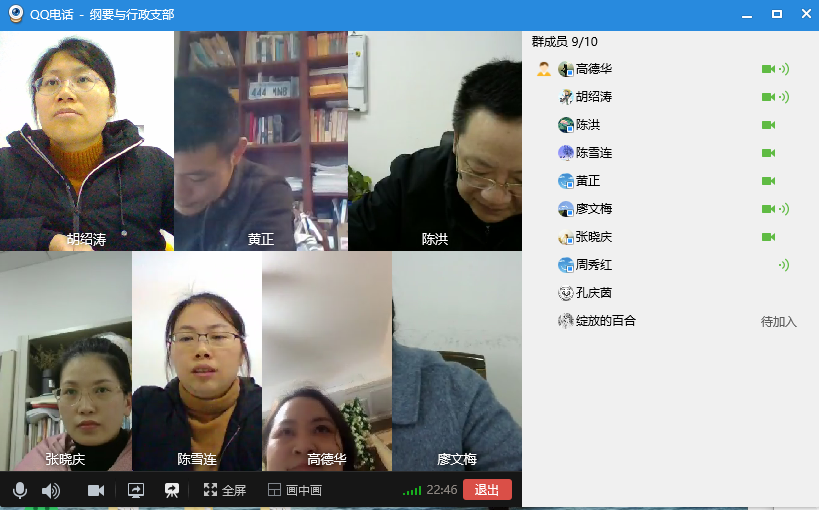 12月31日下午,中国近现代史纲要教研室与行政党支部(简称纲要与行政支部)通过QQ视频会议开展了主题党日活动。本支部参会党员应到10人,实到9人,会议由支部书记黄正同志主持。