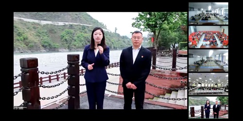 随后,通过现场网络连线方式,校内的教学场景转移至四川省雅安市石棉县中国工农红军强度大渡河纪念馆。付婷婷老师在红军机枪大炮阵地遗址,邓梅老师在纪念碑广场,王雅君老师在大渡河纪念馆,付婷婷和宋福刚老师在红军渡口开展了一场身临其境的现场直播授课。按照“当年红军为什么要强渡大渡河”,“红军为什么要在安顺场渡过大渡河”,“红军既然成功地强渡大渡河,为什么后来还要飞夺泸定桥”的问题链,几位老师深入讲述了90年前的中国工农红军在此开展的一场惊心动魄的伟大壮举。