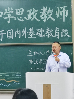 特邀重庆市渝西中学李应友老师于砺志楼T2213开展“基于国内外基础教育改革进展的教学设计创新研究”讲座。本次讲座由学院郑瑜老师主持,学院2022级思想政治教育本科和2023级学科教学(思政)研究生共计309位学生参加讲座。