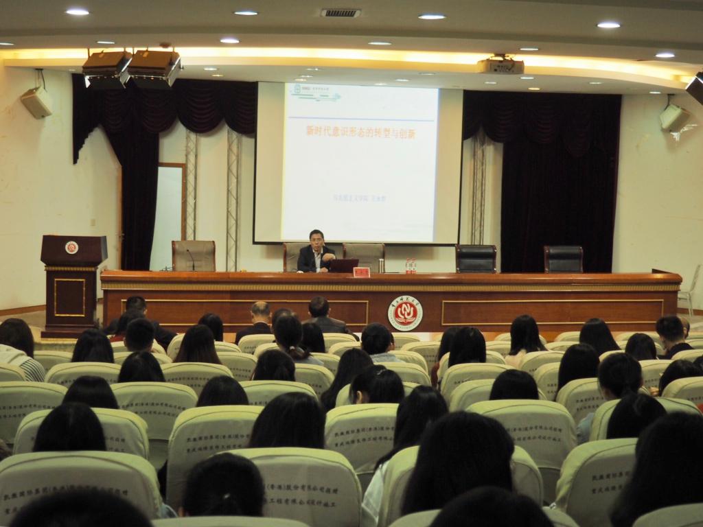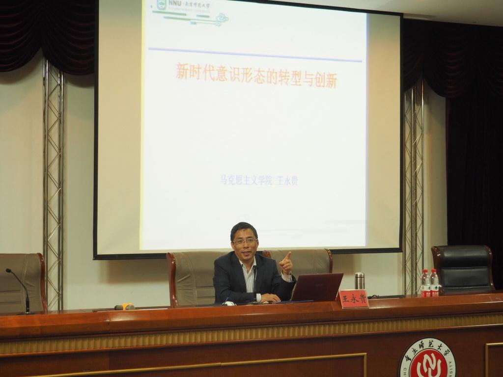 2018年10月26日上午9:00,南京师范大学二级教授、博士生导师王永贵教授应学院邀请,在弘德楼凯撒报告厅作了一场题为“新时代意识形态的转型与创新”的学术讲座。学院教师和2017级、2018级全体研究生、部分本科生聆听了讲座。讲座由学院院长陈洪教授主持。