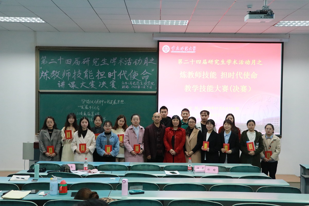 经过激烈角逐,邓玉苹、黄丹、赵亚玲获得本次教学技能大赛一等奖;陈凤霞、万晓慧、唐春花、张恒瑞、周玉杰获得二等奖;王丽娟、李虎姣、马彬、陈娉、傅潇潇、卢晓林、李灿、马珊获得三等奖。