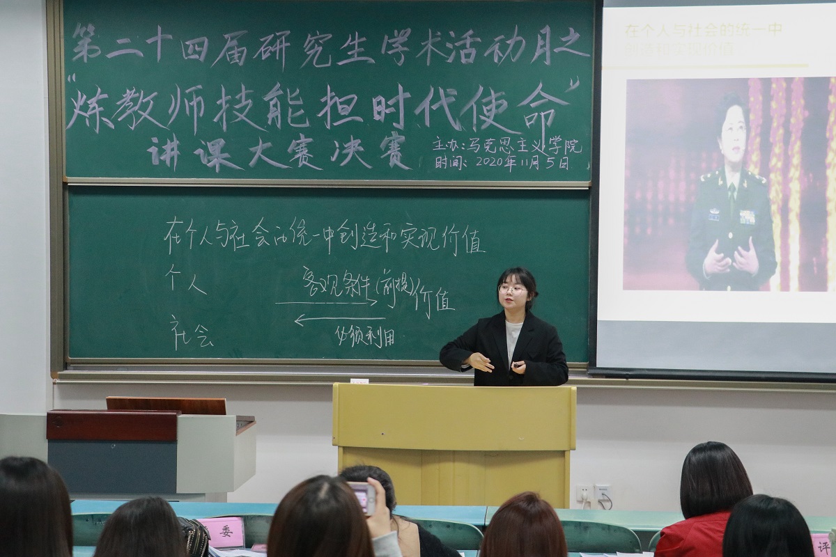 8位选手都展示完毕后,兰桂萍副教授为本次活动进行了专业点评,兰老师首先肯定了各位选手的精彩表现,同时在教学设计、选题的逻辑性、案例的选择等专业领域给出了建议。郑瑜副教授也进行了简短点评,建议同学们落实到思想政治教育并注重价值观的引导。本次比赛不仅让同学们明白了理论联系实际的重要性,同时督促马院学子在未来的学习中更加注重师范技能的提升,增强语言组织能力和语言表达能力,为走上三尺讲台、成为一名优秀的人民教师而不断奋斗。