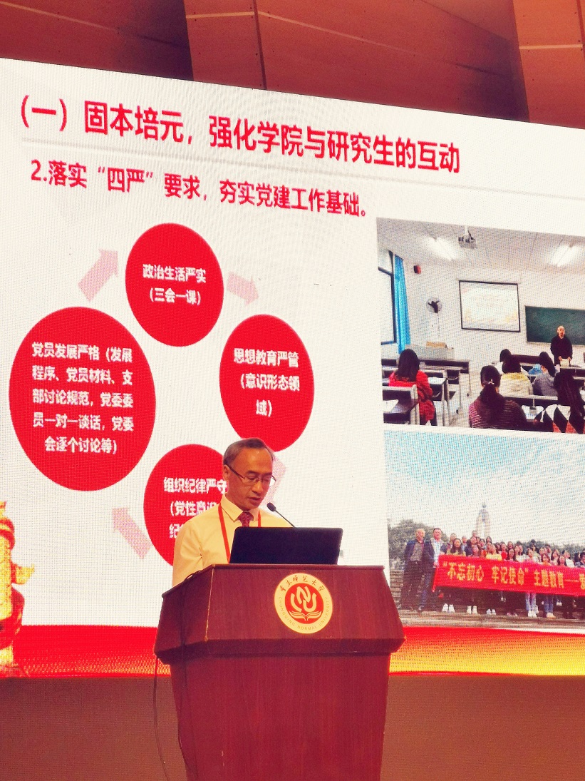 研究生培养工作进行了汇报。刘书记汇报的题目是《坚持旗帜引领,强化“五个互动”,切实提高研究生党建与思政工作新成效》,他从三个方面进行了汇报。首先,他介绍了探花av
