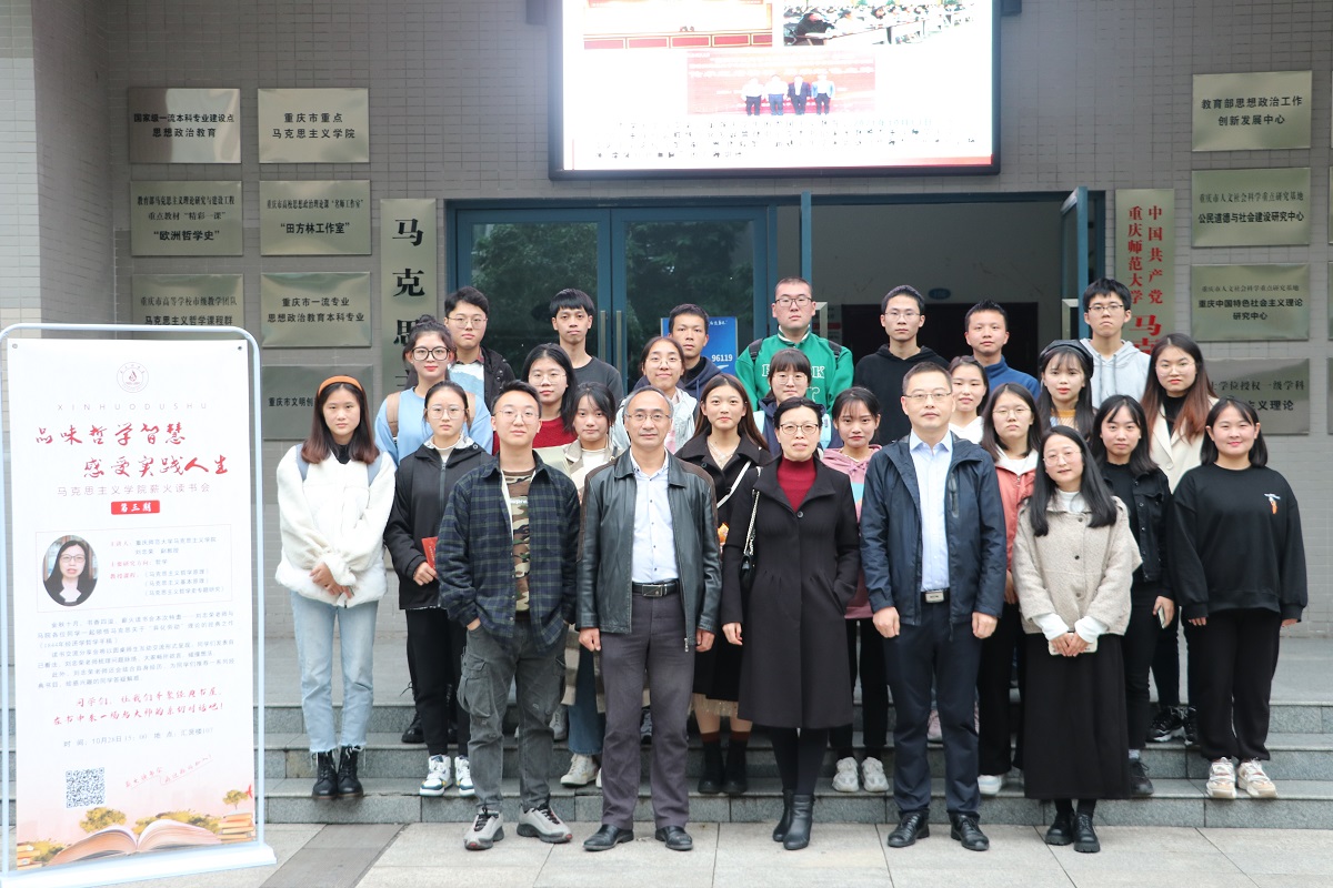 最后,学院党委刘军书记分享了自己有关马列经典书籍的学习经历。并强调要以马列经典阅读、分享为载体,打造马院特色思想政治教育阵地;要增强自身专业学术素养、提高人格内在修养;要将学科知识与内在精神相互融合、共同滋养;要改变学习方式、促进深度学习,把要我读转变为我要读,把被动接受转变为主动学习。刘军书记还给同学们提出殷切期望:珍惜这样的时光、机会、资源,真正把自己变强大,在学习的道路上越走越宽广,让人生越走越辉煌。也祝愿薪火读书会越来越壮大。分享活动结束后,所有师生一起合影留念。