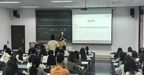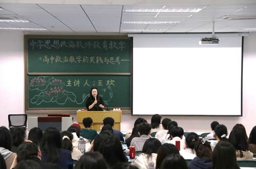 2025年4月24日下午探花av 特邀巴蜀中学思想政治学科王欢老师,在求是楼213作题为“高中政治教学的实践与思考——与未来思政教师的对话”的讲座。讲座由学政教系副主任彭君君博士主持,我院思想政治教育专业本科生和思政专业“协同提质计划”本科学生参加