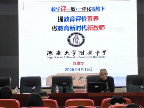 举办“教学评一致·一体化视域下:提教育评价素养,做教育新时代新教师”的专题讲座,特邀西南大学附属中学隆维华老师主讲。学院副院长田方林老师、政教系副主任彭君君老师出席活动,2024级部分本科生及研究生同学到场学习。