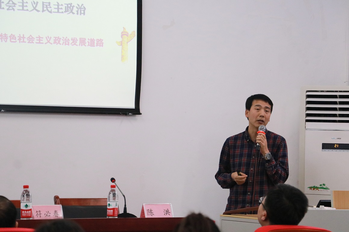 副教授张金国博士以“坚持中国特色社会主义政治发展道路”为主题,从“历史逻辑”、“理论逻辑”、“实践逻辑”三个维度讲授了坚持走中国特色社会主义政治发展道路的必然性。他的课堂旁征博引、生动有趣,获得现场师生一致好评。