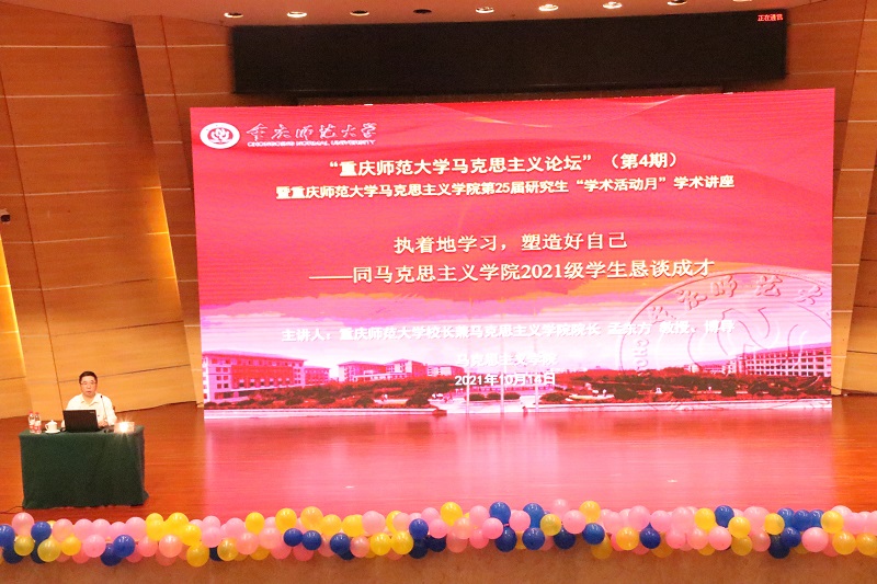 最后,孟教授梳理了重师和马院的发展历程以及取得的辉煌成就,彰显了重师、马院的风采,激励全体新同学共促未来大发展。