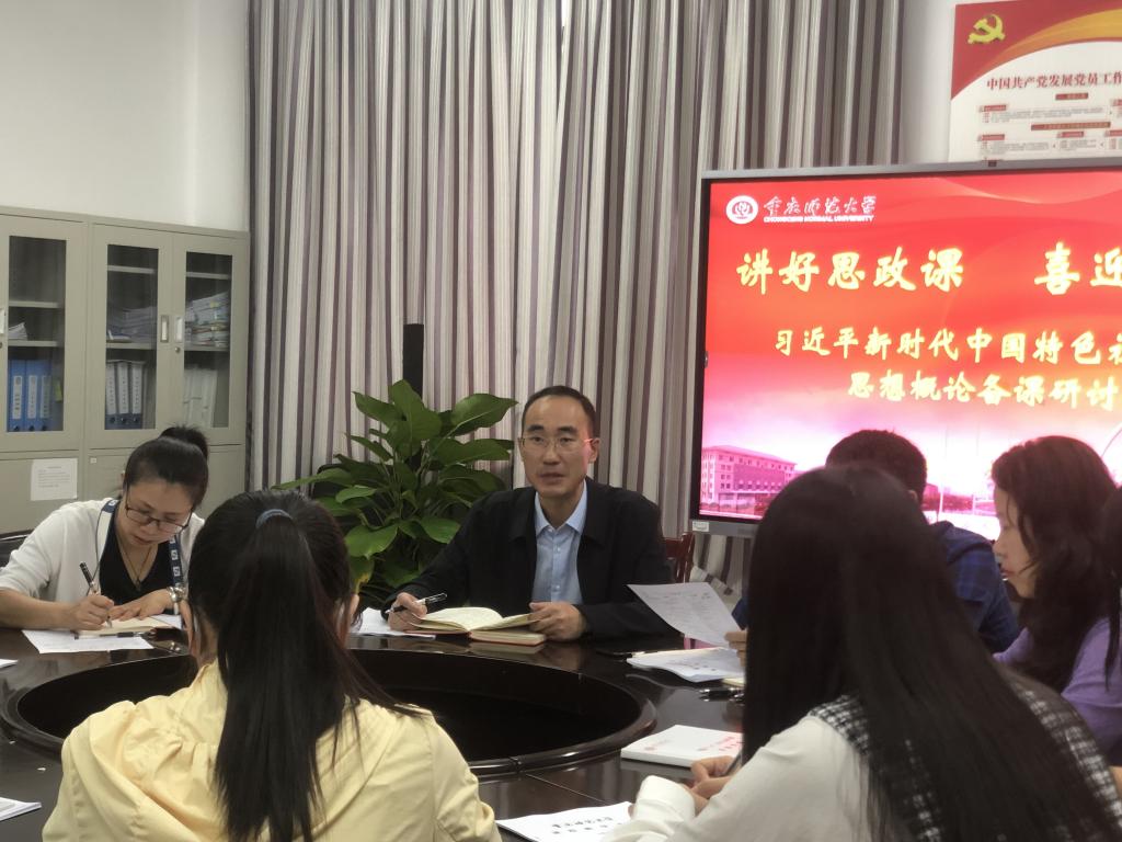 会上,李晓燕书记首先传达了上级部门对习近平新时代中国特色社会主义思想概论课程的相关要求。他强调,作为一门新开设的必修课程,重视备课环节、保证教学质量,老师们要结合本土资源开展教学,帮助学生更好的理解习近平新时代中国特色社会主义思想。副院长姜土生教授从三个方面对课程的开展提出意见,一是起步要稳,要围绕习近平新时代中国特色社会主义思想的内容开启教学;二是内容要准,讲授要有依据;三是发展要提升,要把课程研究透。副院长侯玲教授表示,习近平新时代中国特色社会主义思想概论课程面向全校开展,教研室队伍庞大,老师们要充满信心,坚定政治站位,提高政治素养,精心打磨内容,扎实推进习近平新时代中国特色社会主义思想“三进”。