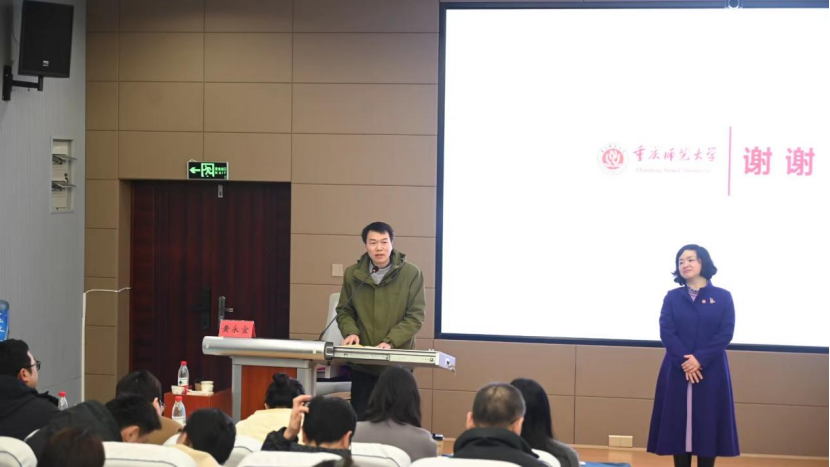 师生做题为“深入学习贯彻党的二十大精神 为推进大中小学思想政治教育一体化建设贡献力量”的学术讲座,重庆市团校、重庆邮电大学相关专家学者出席,学院党委书记李晓燕、副书记方敏,学校相关职能部门负责人、学院部分教师、硕士研究生到场学习,讲座由副院长(主持行政工作)姜土生教授主持。